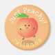 Bara peachy! Den här söta designen har vår lycklig-hoppande persika i tecknaden illustration stil.