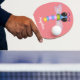 Tecknad av drakflygning i rutt blått och rosa pingisracket