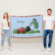 En lustig grönt groda som gräver gräsmatta i fåniget tecknad stil.