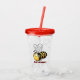 den senaste stöten! Det här söta humla ritas i lycklig tecknad stil med blå bakgrund.