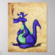 En söt tecknad av en lila och grönt drake med en mycket orolig syn på det är ansikte. En underbar design för barn eller bara för dem som är unga i hjärtat.