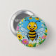 Lycklig Smiling Tecknad Bee flyger i ängen med färgade blommor