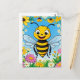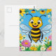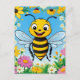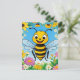 Lycklig Smiling Tecknad Bee flyger i ängen med färgade blommor
