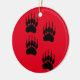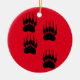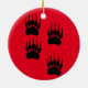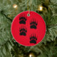 Cute tecknad stil bär tass avtryck. Anpassningsbar keramiska prydnadsämnen med röd bakgrund. Juldekoration.