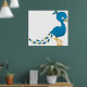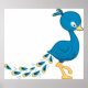 Tecknad blå påfågel fågel poster
