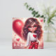 Tecknad blyg valentin dag sassy flicka med rött hj julkort