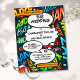 En roligt, coola och trendig retro tecknad bok popkonstinspirerad bröllopsinbjudan som sätter in visken, skaka, pow i alla superhjältepars firande-evenemang. Designad av Thisisnotme©