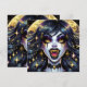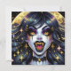 Halloween-inbjudningar. Black and guld vampyr med guldfangs och ögon tecknad bok popkonst. Coola för Halloween eller vem som helst som kärlek vampyrer..