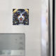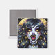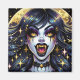 Halloween fest magnet. Black and guld vampyr med guldfangs och ögon tecknad bok popkonst. Coola för Halloween eller vem som helst som kärlek vampyrer..