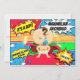 Pow! Det är en pojke! En söt superhjälte baby med blått nappar och rött liggande annonserar stolt att din lilla hjälte föds. Anpassa den med baby namn, födelsetid och vikt.