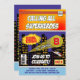 Tecknad Bok Superhjälte Birthday Bjud - formad för att likna en tecknad bok. Varje inbjudan har en stadsbakgrund med tecknaden bok punkt mönster överst i orange och röd. Utformningen har också en spotlight i himmel med en demoålder som du kan ändra. Ändra de röda numren i rutorna gult till händelsens månad och datum. Varje inbjudan kommer med ett kuvert från passande. Se nedan för matchande produkter.