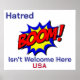 Använda i tecknaden stil BOOM! Hatred är inte välkommen hit som en modig påstående av protester mot den nuvarande administrationens åtgärder. Vare sig du bär på en marsch eller hänger den på en vägg är budskapet tydligt.