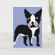 Tecknaden stil Boston Terrier med fetstil och smak står på kortet (lägg till din egen text om du vill). Inuti står det: "Tack för att du är min vän"
