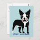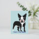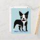 Den här tecknaden förvandlar stil Boston Terrier-vykortet den vanliga frasen "önskar att du var här" och säger "önskar att jag var där" Ändra texten till något annat om du vill