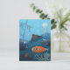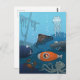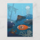 Det här söta vykortet, designat i blått, har modiga barn som utforskar undervattenslivet från undervattensfönstret. Han reser bland korallerna och frakten och tittar på olika undervattensdjur som bläckfisk, haj, krabba, maneter. Underbart kort till pojken som är intresserad av undervattensvärlden.