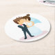 Tecknad Bride & Groom Kissing Bröllop Underlägg Papper Rund