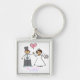 Tecknad Bröllop par Bride & Groom Rosa Heart Fyrkantig Silverfärgad Nyckelring