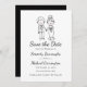 Letar du efter ett unikt sätt att meddela din förlovning? Leta inte längre! Vi har den perfekta lösningen för dig. Vårt förtjusande illustrerade "Spara datumet"-meddelande presenterar en charmig brudgum och hans fantastiska brud, som kommer att ge dina gäster ett varaktigt intryck. Oavsett om du planerar ett vintage-, sommar-, retro-, höst- eller avslappnat tema, passar denna underrättelse perfekt för alla tillfällen. Glöm inte att kolla in våra matchande produkter och gåvor för att fullborda din bröllopsplanering. Tveka inte – scrolla ner och ta en närmare titt idag!