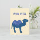 Oavsett om du är värd för ett ökentemat firande eller en födelsedagsfest för någon som är fläkt av kameler, är de här partiinbjudningarna ett val för perfekten. På framsidan finns en stor illustration av en blå bakteriekamel eller en kamel med två fuktade färger, med en mindre mönster av kameler i blått, orange och gult på baksidan tillsammans med alla dina uppgifter om party.