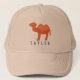 Lägg till ditt eget namn eller meddelande till den här kameraluckarens hatt eller basebollhatt för att skapa en personlig för roligt. Den har en enkel illustration av en bakteriekamel eller en kamel med två pucklar i orange i tecknad stil och ditt namn i blått nedanför.