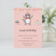 Grattis till din lilla speciella dag med de här vackra inbjudningskorten på födelsedagen! De här korten har nio tecknader med tillbehör till roligtar, som blommigt krona, bogar, glas, huvudband, hattar och mycket annat. Informationen om anpassningsbar party visas nedan i modern skripttypografi. Kort bakåt till en handdragen polka mönster mot en rosa bakgrund. Om du vill anpassa texten redigerar du den i mallrutorna och väljer papper höger och utskriftsalternativ för dig!