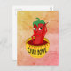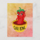 En röd och het paprikatecknad figur i en skål chili. Originaldesign.