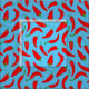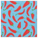 Roligt med en mönster av tecknad chilipaprika med blå bakgrund.