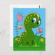 Tecknad Dinosaur, blommor och fjärilar Vykort