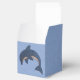 Den här förmåns- eller presentboxen är ljusblå med en glitter mörk blått och vit, hoppande söt tecknad delfin på framsidan och baksidan. Anpassa texten på översta sidan med mallen.