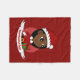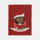 Släng filt med en illustration av en söt, leende amerikansk flicka från lycklig med långt svart hår, hon bär en röd och vit Jultomten-dräkt och håller en present; med en redigerbar textmall för ditt namn eller meddelande, juldesign med röd helgdagar