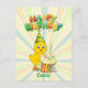 Tecknad av matkyckling med blått öga, födelsedagshatt, att hålla en födelsedagskalas med ett ljus och ett grattis på födelsedagen-tecken ovanför med färglös strålbakgrund. Anpassa om du vill ändra namn eller ta bort texten.