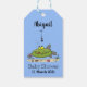 Tecknad för fiske av fisk i hungrig grönt i tjock presentetikett
