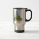 Tecknad för fiske av fisk i hungrig grönt i tjock resemugg