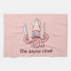 tecknad av rosa bläckkock med mustasch som håller knivar och kokgaffel. Anpassningsbarnas bakgrund färg. Anpassningsbar.