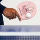 tecknad av rosa bläckkock med mustasch som håller knivar och kokgaffel. Anpassningsbarnas bakgrund färg. Anpassningsbar. Sömlös mönster på baksidan.