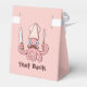 tecknad av rosa bläckkock med mustasch som håller knivar och kokgaffel. Anpassningsbarnas bakgrund färg. Anpassningsbar.
