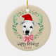 Skräddarsy denna julprydnad och ge den som en gåva för alla djurälskare på ditt ge sig för helgdaggåva listar. Denna helgdagprydnad presenterar rasterized avbildar av min mycket egna räddade groptjur som ha på sig en röd Santa hatt som inramas i en helgdagkran. Personifiera enkelt den med något som du önskar. Du kan även låtsa gåvan är från hunden! Roligt och festligt för helgdagar, för hund älskare och djur älskare överallt. Lyckliga Holidogs!