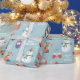 Den här söta helgdagarna har uggla, rävar, röda bilar med Julgranar, snögubbar, hus och annat på en mjuk blå bakgrund av måne och stjärnor.