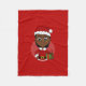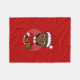 Utformning med en illustration av en söt, leende svart flicka i lycklig med kort hår, hon bär röd och vit Jultomten-dräkt och håller en present; juldesign med röd bakgrund och helgdagar med röd bakgrund