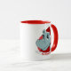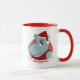 Jul mugg med en illustration av ett sött lycklig hippopotamus med röd och vit Jultomten hatt; juldesign med anpassade helgdagar med textmall för ditt namn eller meddelande