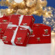 Utformning av personligen med en illustration av att lycklig leende afrikansk man med Jultomten. med redigerbar textmall, juldesign med röd bakgrund, helgdagar av Radka Kavalcova