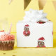 Personligen är utformad för att illustrera en söt leende lycklig-pojke med svart hår, pojken bär en Jultomten-dräkt med röd hatt och håller en present. i röd cirkel på vit bakgrund, med anpassadets textmall för ditt namn eller meddelande