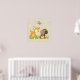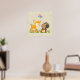 En poster med en söt illustration som visar en hjort i baby och en liten ekorre som håller en akorn och en fjäril som flyger över deras huvuden. De här vackra skogslandarna som står på lite gräs med lite viskaktig svamp vid fötterna. Bakgrunden har en papper brunkolsslang.
