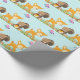 En mönstrad förpackning papper med en söt illustration med en hjort i baby och en liten ekorre med en akorn och en fjäril som flyger över deras huvuden. De här vackra skogslandarna som står på lite gräs med lite viskaktig svamp vid fötterna.