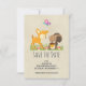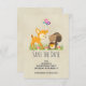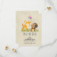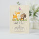 Spara datumkortet med en söt illustration med en baby hjort och en liten ekorre med en akorn och en fjäril som flyger över deras huvuden. De här vackra skogslandarna som står på lite gräs med lite viskaktig svamp vid fötterna.