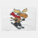 tecknad för moose skier| välj bakgrund färg kökshandduk