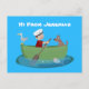 För nautisk roligt! Den här designen har en pojke som roterar sin båt på havet med en hund- och sjögull med en lycklig-fisk som säger hej! Ritad i en söt illustration av tecknaden stil.