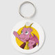 Nyckelkedja med illustration av huvudet på en söt liten rosa som flyger drake, i gultens cirkel, söt fantasi/saga design för barn av Maxi Harmony
