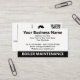 Uppvärmning av affärskortet ingenjör. Affärskortet Boiler Maintenance Services med en Tecknad Illustration på framsidan och en QR-kod så att kunderna kan gå till webbplatsen.