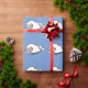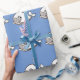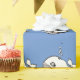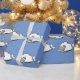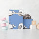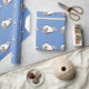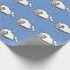 Söt, tjock val tecknad teckning i svart och vitt på blå bakgrund med stora leende tänder.